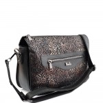 ДАМСКА ЧАНТА ПРЕЗ РАМО-3851-ЦВЕТЯ-ЧЕРНА