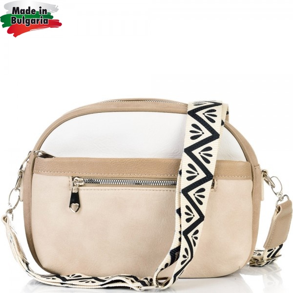 ДАМСКА ЧАНТА ПРЕЗ РАМО-S1345-БЕЖОВО/БЯЛО