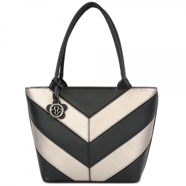 ДАМСКА ЧАНТА-T2564-ЧЕРНО/БРОНЗОВО