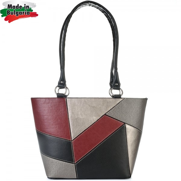 ДАМСКА ЧАНТА-T2658-ЧЕРНО/БОРДО/БРОНЗОВО