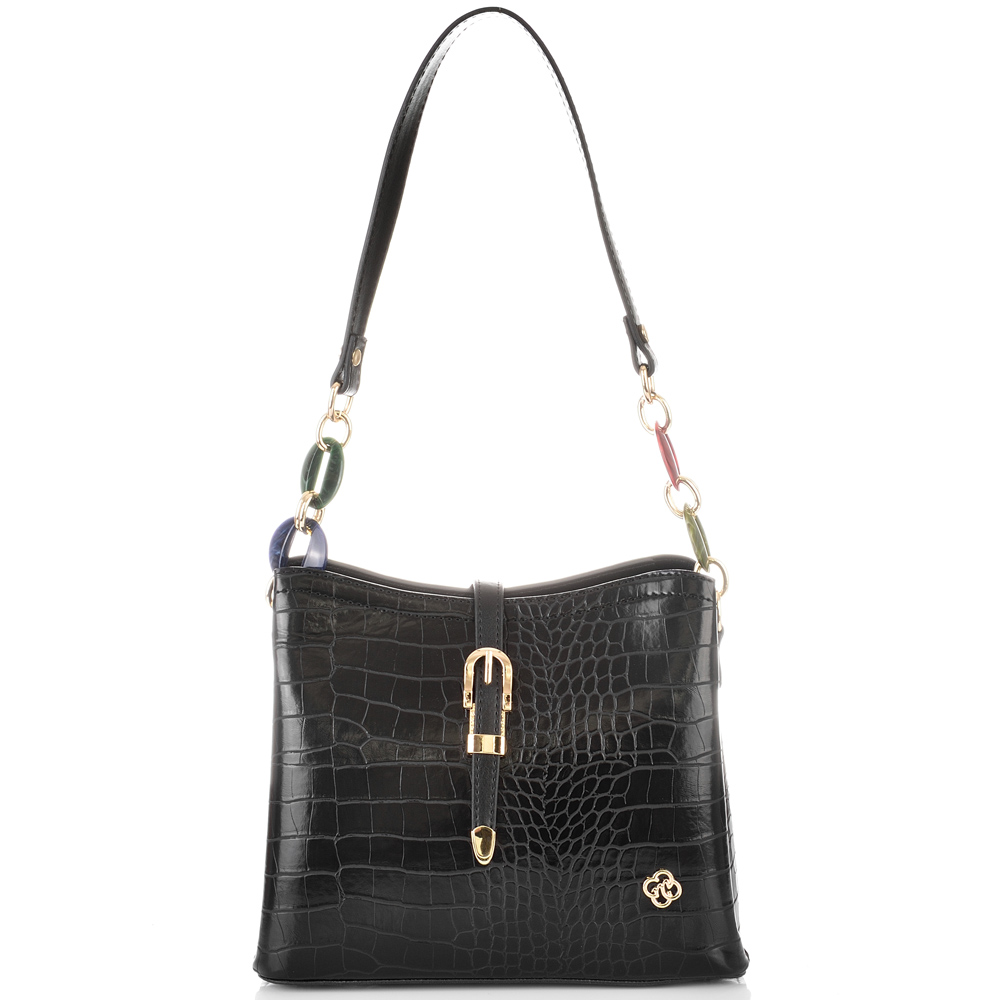 ДАМСКА ЕЛЕГАНТНА ЧАНТА-525-КРОКО-ЧЕРНА