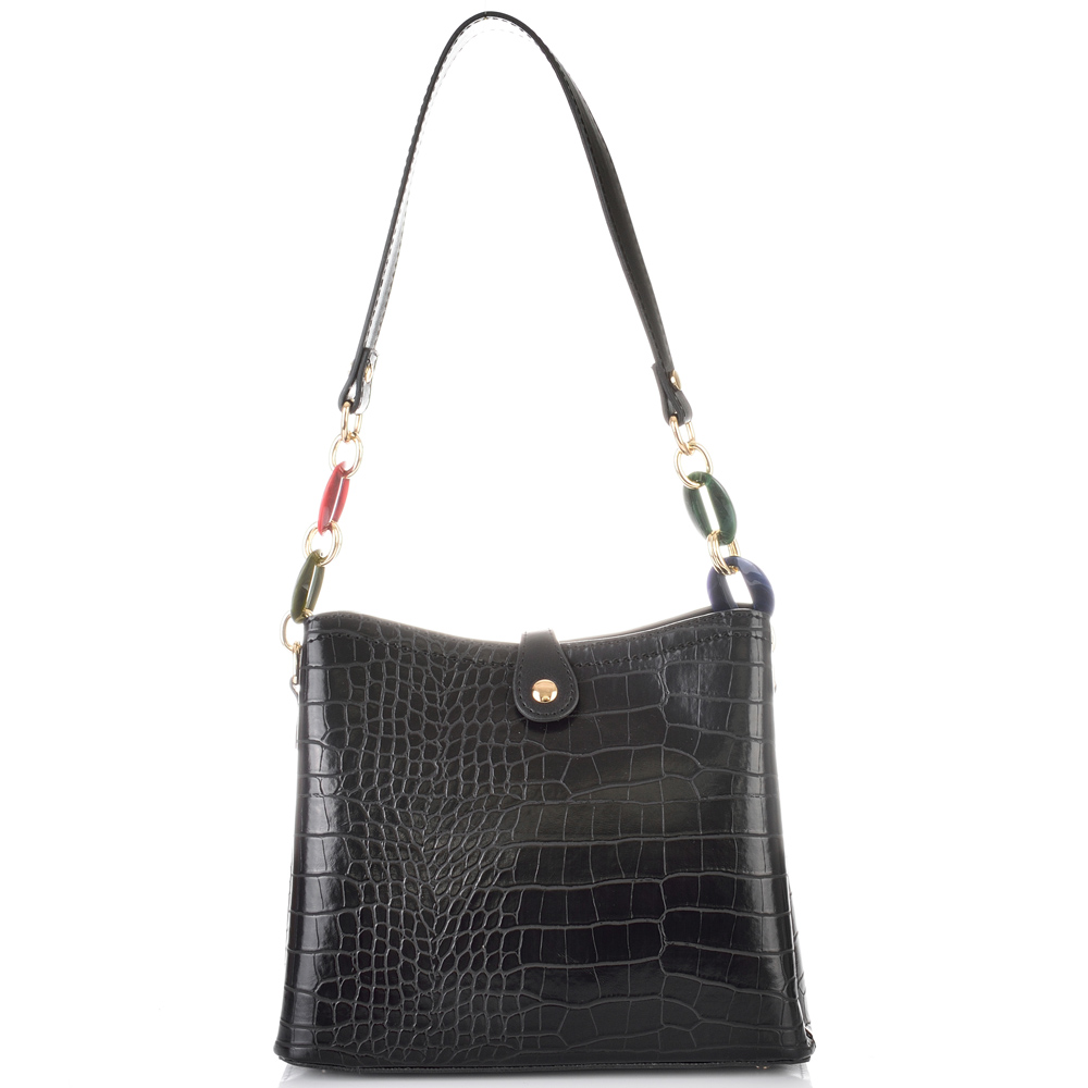 ДАМСКА ЕЛЕГАНТНА ЧАНТА-525-КРОКО-ЧЕРНА