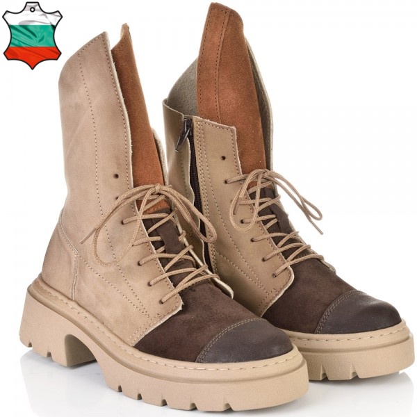 ДАМСКИ АСИМЕТРИЧНИ БОТИ ОТ ЕСТЕСТВЕН НАБУК/ВЕЛУР-231-БЕЖОВИ