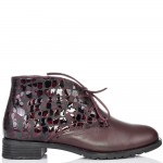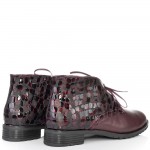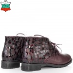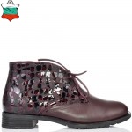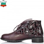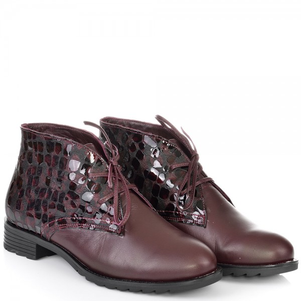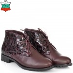 Дамски кларкове от естествена кожа в цвят бордо, с кожени връзки и ефектна кожа. Вътрешната част на модела е с тънък, мек и топъл хастар. Ходилото е каучук и е изключително стабилно и не се пързаля на заледени и заснежени участъци. Този модел е перфектният избор за Вашата ежедневна визия