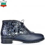 Дамски кларкове от естествена кожа тъмно сини, с кожени връзки и ефектна кожа. Вътрешната част на модела е с тънък, мек и топъл хастар. Ходилото е каучук и е изключително стабилно и не се пързаля на заледени и заснежени участъци. Този модел е перфектният избор за Вашата ежедневна визия