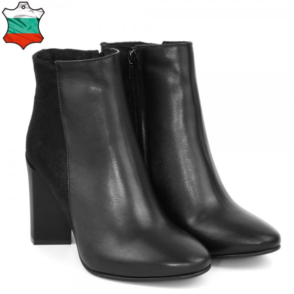 Дамски боти на стабилен ефектен ток. Моделът е изработен от естествена кожа и естествена кожа с косъм, много прибрани при глезена за максимален комфорт и удобство. Вътрешната част на модела е с тънък, мек и топъл хастар подходящ за зимата. Ходилото е от каучук и много стабилно на лед и сняг. Тези боти ще осигурят нужния Ви комфорт, топлина и удобство през целия ден.