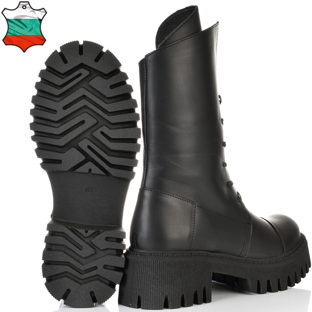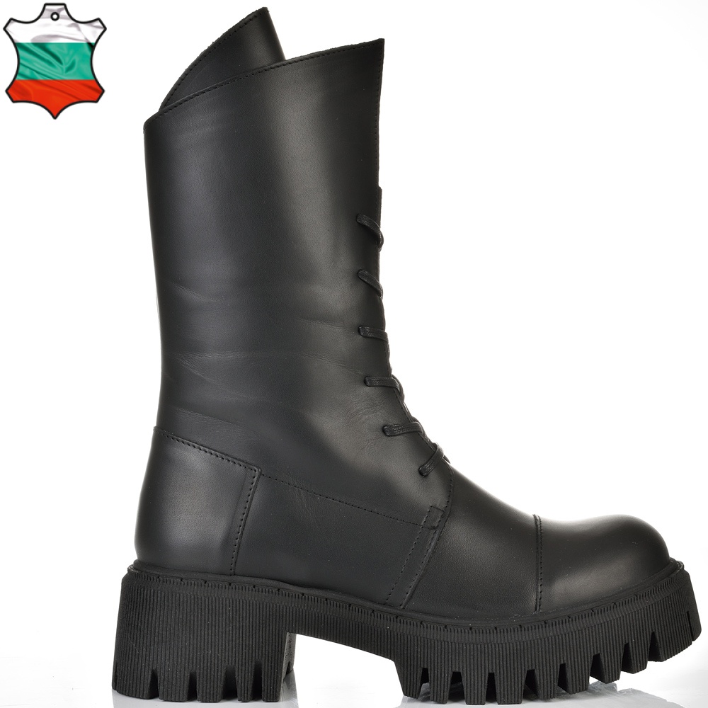 ДАМСКИ БОТИ ОТ ЕСТЕСТВЕНА КОЖА НА ОЛЕКОТЕНО ХОДИЛО-KALBIM 01-ЧЕРНИ