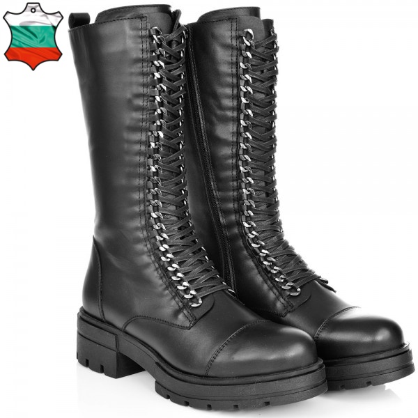 дамски ботуши от естествена кожа в класическо черно с ефектни връзки. Моделът е