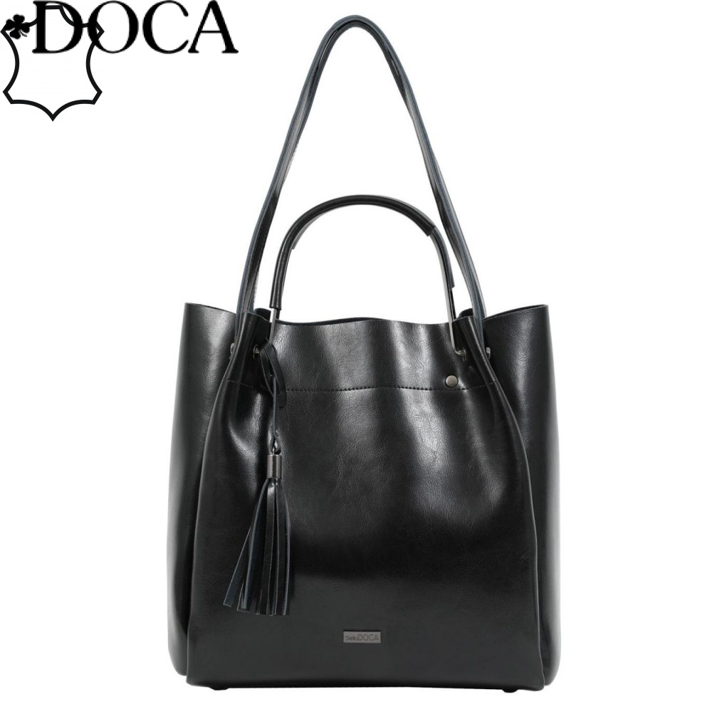 ДАМСКА ЧАНТА ОТ ЕСТЕСТВЕНА КОЖА-DOCA-22296-ЧЕРНА