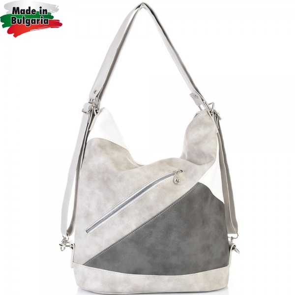 БЪЛГАРСКА ДАМСКА ЧАНТА/РАНИЦА-S1351-СИВО/БЯЛО