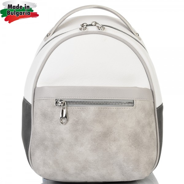 БЪЛГАРСКА ДАМСКА РАНИЦА-S1334-СИВО/БЯЛО