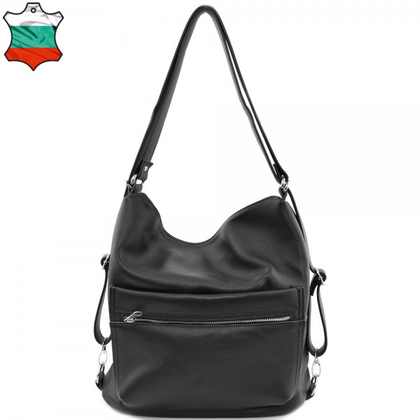 ДАМСКА ЧАНТА/РАНИЦА ОТ ЕСТЕСТВЕНА КОЖА-8348-ЧЕРНА