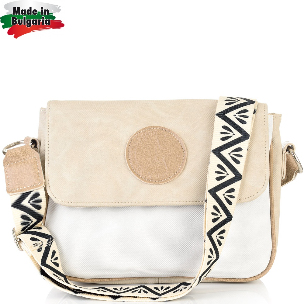 ДАМСКА ЧАНТА ПРЕЗ РАМО-S1342-БЯЛО/БЕЖОВО