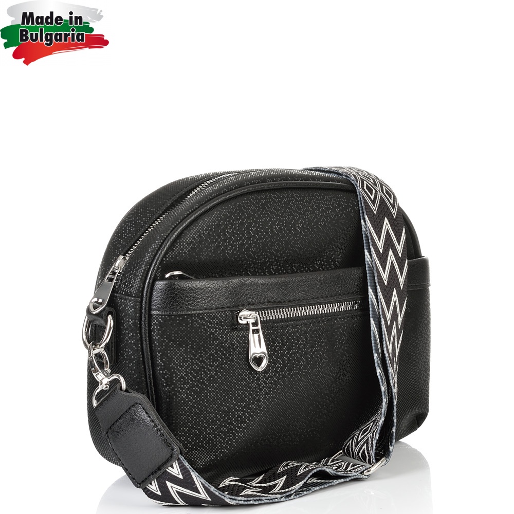 ДАМСКА ЧАНТА ПРЕЗ РАМО-S1345-ЕФЕКТНА КОЖА-ЧЕРНА