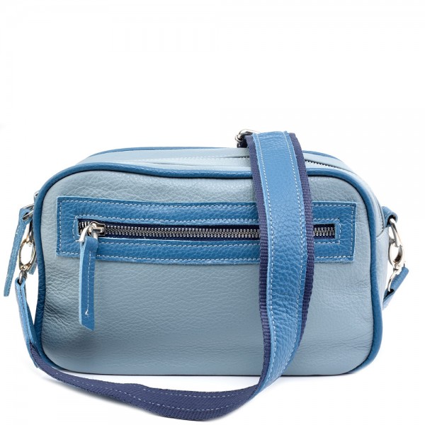 ДАМСКА ЧАНТА ПРЕЗ РАМО ОТ ЕСТЕСТВЕНА КОЖА-1364-СВ.СИНЯ