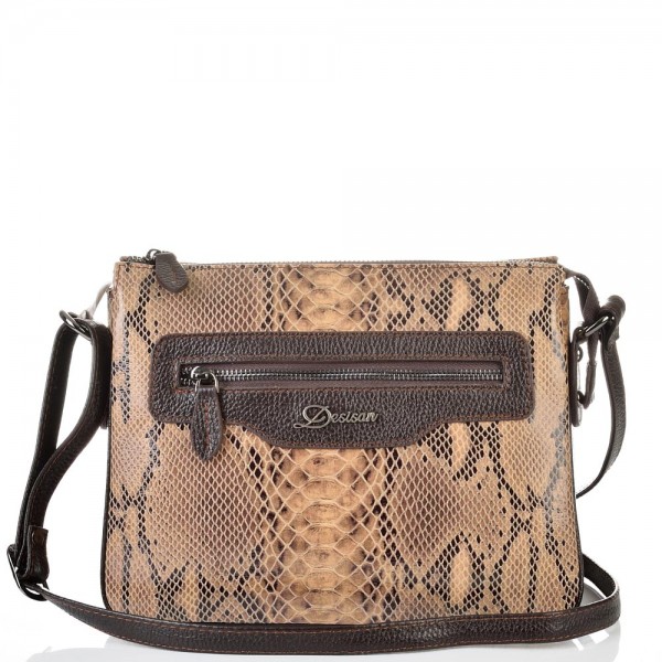 ДАМСКА ЧАНТА ПРЕЗ РАМО ОТ ЕСТЕСТВЕНА КОЖА-3014-ЕФЕКТНА-КАФЯВО/БЕЖОВА