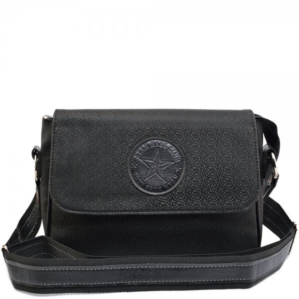 ДАМСКА ЧАНТА ПРЕЗ РАМО-S1342-ЕФЕКТНА КОЖА-ЧЕРНА