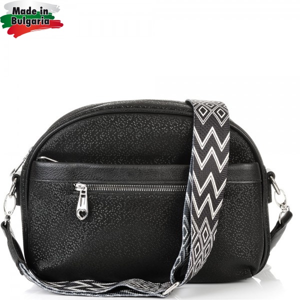 ДАМСКА ЧАНТА ПРЕЗ РАМО-S1345-ЕФЕКТНА КОЖА-ЧЕРНА