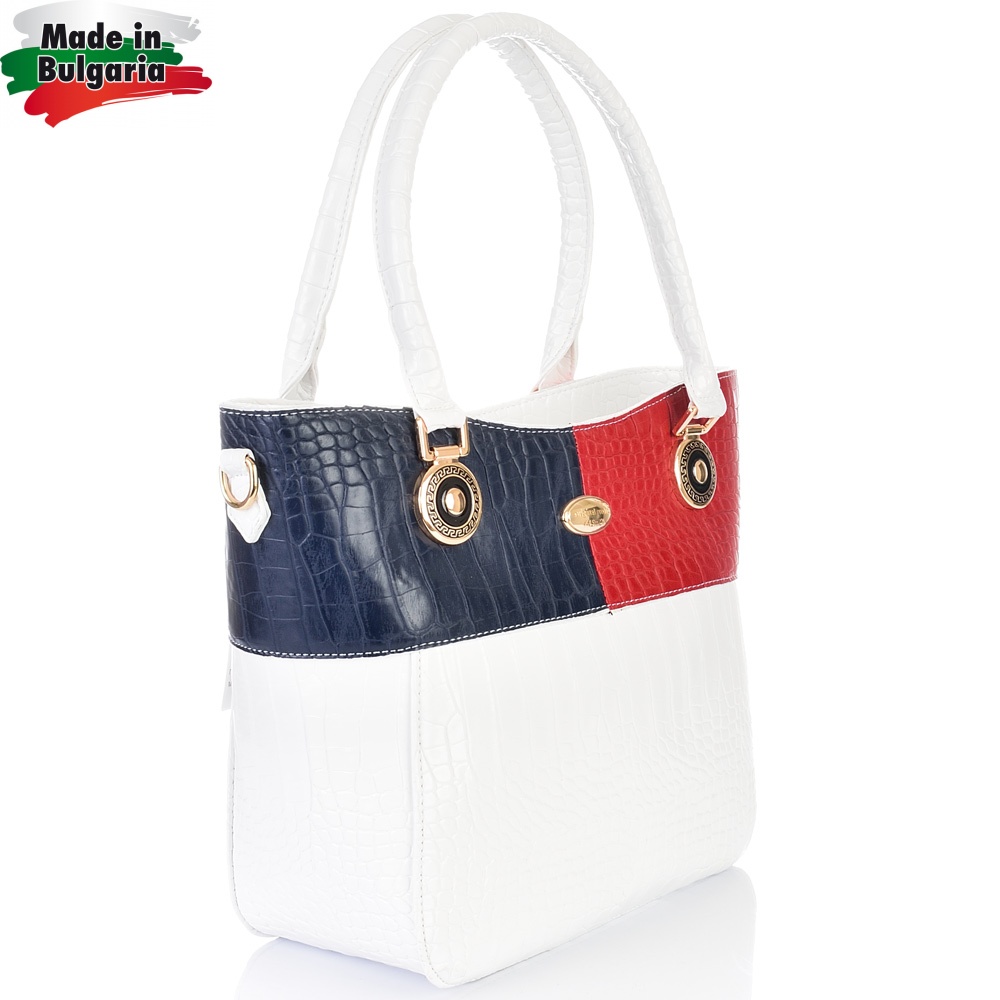 ДАМСКА ЧАНТА-T2428-БЯЛО/ЧЕРВЕНО/СИНЬО