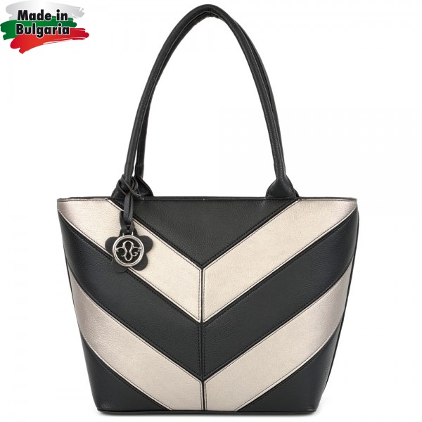 ДАМСКА ЧАНТА-T2564-ЧЕРНО/БРОНЗОВО