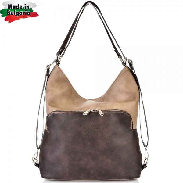 БЪЛГАРСКА ДАМСКА ЧАНТА/РАНИЦА-S1327-БЕЖОВО/КАФЯВО