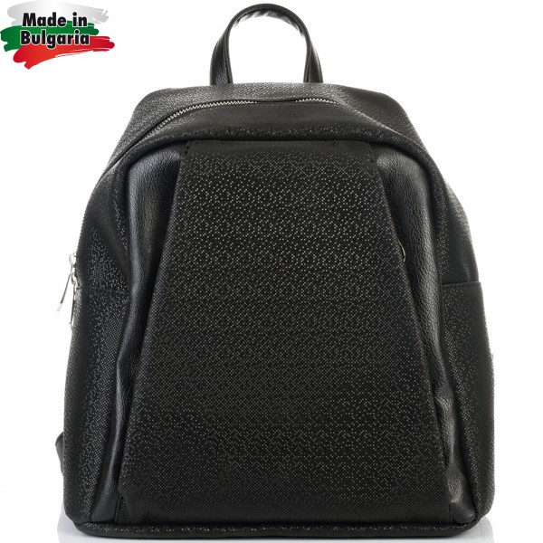 БЪЛГАРСКА ДАМСКА РАНИЦА-S1291-ЕФЕКТНА КОЖА-ЧЕРНА