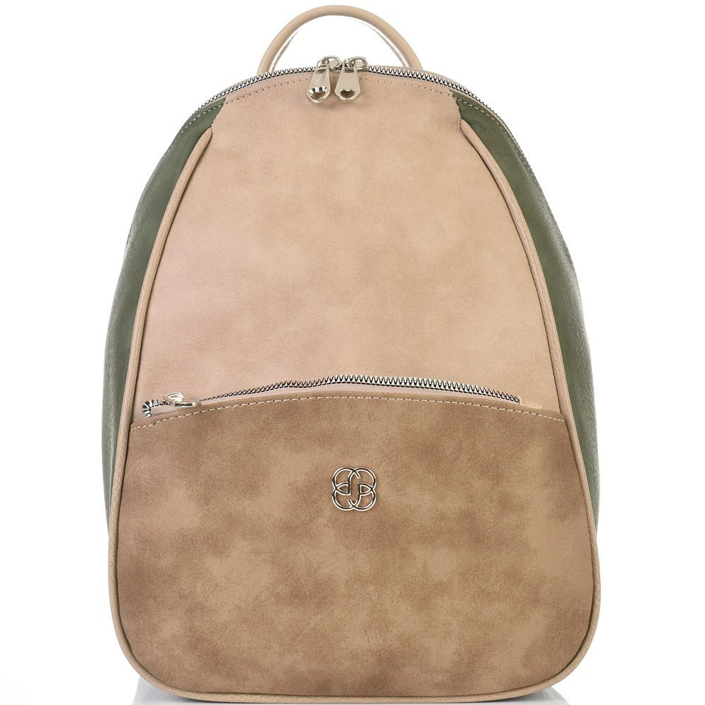 БЪЛГАРСКА ДАМСКА РАНИЦА-S1323-ЗЕЛЕНО/БЕЖОВО