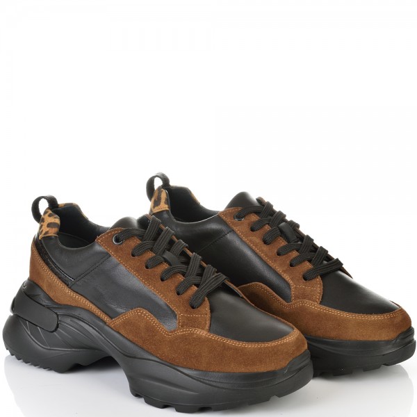 ДАМСКИ КЕЦОВЕ ОТ ЕСТЕСТВЕНА КОЖА-D4071-ЧЕРНО/ТАБА