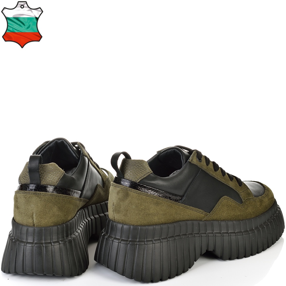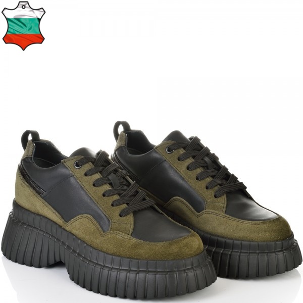 ДАМСКИ КЕЦОВЕ ОТ ЕСТЕСТВЕНА КОЖА-D4071-ЧЕРНО/ЗЕЛЕНО