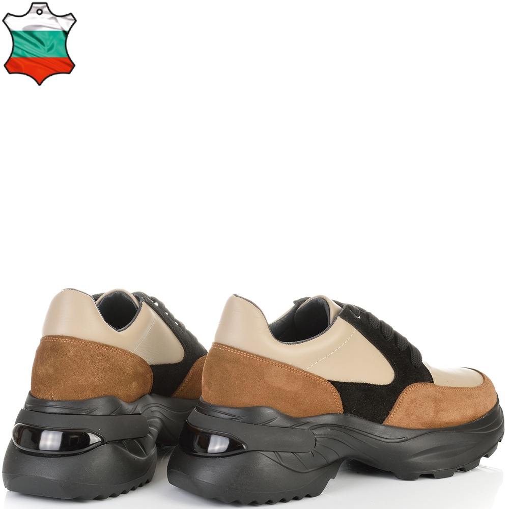 ДАМСКИ КЕЦОВЕ ОТ ЕСТЕСТВЕНА КОЖА С ВЕЛУР-D6030-ЧЕРНО/БЕЖОВО/КАФЯВО