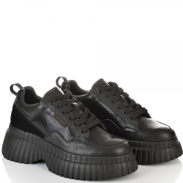 Кецовете са изработени от нежно съчетание на кожа и велур с връзки. Моделът е