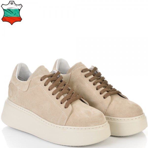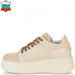 ДАМСКИ КЕЦОВЕ НА ПОВДИГНАТО ХОДИЛО ОТ ЕСТЕСТВЕН ВЕЛУР-7070-БЕЖОВИ