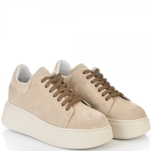 ДАМСКИ КЕЦОВЕ НА ПОВДИГНАТО ХОДИЛО ОТ ЕСТЕСТВЕН ВЕЛУР-7070-БЕЖОВИ