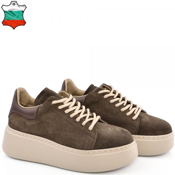 ДАМСКИ КЕЦОВЕ НА ПОВДИГНАТО ХОДИЛО ОТ ЕСТЕСТВЕН ВЕЛУР-C7070-КАФЯВИ