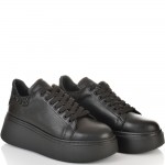 Класиката винаги е на мода! Семпли, но стилни с дискретен блясък в задната част при петата нашите кецове на високо повдигнато ходило в черна напа ще допринеса за твоята прекрасна визия в ежедневието и ще вкарат щипка блясък. Вътрешната част на модела също е изцяло от естествена кожа, а стелката е Footbed, която е изключително мека и се оформя по стъпалото на принципа на мемори пяна. В допълнение моделът е с олекотено полиуретаново ходило, шито и лепено, което перфектно допълва комфорта на модела и следва естествената линия на движение на краката. С тях ще бъдете просто неотразима