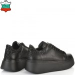 Класиката винаги е на мода! Семпли, но стилни с дискретен блясък в задната част при петата нашите кецове на високо повдигнато ходило в черна напа ще допринеса за твоята прекрасна визия в ежедневието и ще вкарат щипка блясък. Вътрешната част на модела също е изцяло от естествена кожа, а стелката е Footbed, която е изключително мека и се оформя по стъпалото на принципа на мемори пяна. В допълнение моделът е с олекотено полиуретаново ходило, шито и лепено, което перфектно допълва комфорта на модела и следва естествената линия на движение на краката. С тях ще бъдете просто неотразима