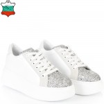 ДАМСКИ КЕЦОВЕ НА ПОВДИГНАТО ХОДИЛО ОТ ЕСТЕСТВЕНА КОЖА С БРОКАТ-7073A-БЯЛО/СРЕБЪРНО