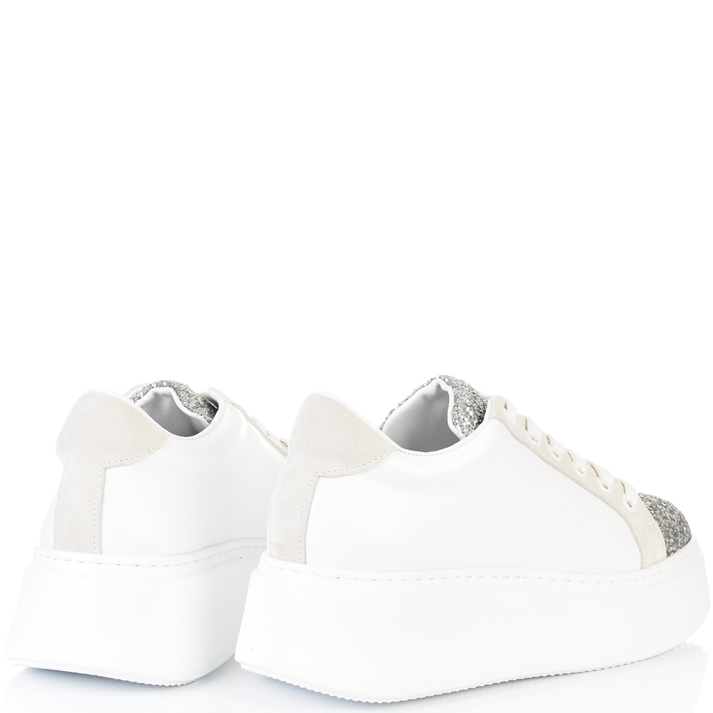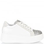 Уникални и неповторими кецове на високо повдигнато ходило с ефектен брокат в сребристо, в нежно съчетание на бяла естествена кожа и сив естествен велур. Блясъкът винаги е на мода, а с тези кецове просто ще заблестите. Вътрешната част на модела също е изцяло от естествена кожа, а стелката е Footbed, която е изключително мека и се оформя по стъпалото на принципа на мемори пяна. В допълнение моделът е с олекотено полиуретаново ходило, шито и лепено, което перфектно допълва комфорта на модела и следва естествената линия на движение на краката. С тях ще бъдете просто неотразима.