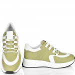 Те са нещо ново и различно изработени от висококачествени и ефектни естествени кожи в зелен и бежов цвят със свежо бяло ходило, което още повече подчертава красотата на модела тези кецове ще приковат погледите към Вас.А чувството което ще изпитате, когато ги обуете е все едно стъпвате върху облече. Защо? Защото кецовете са със специална Footbed стелка, която е изключително мека и се оформя по стъпалото на принципа на мемори пяна. И накрая, но не на последно място кецовете са с полиуретаново ходило, което следва естествената линия на движения при походката.