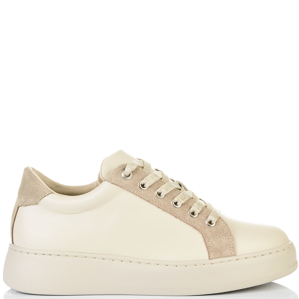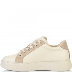 Класически модел дамски кецове в нежно съчетание на бежова естествена кожа и бежов естествен велур. С избора на този модел няма как да се сгреши, винаги модерни, лесно се съчетават с всякакъв тип облекло и изключително леки и удобни. Вътрешната част на модела също е изцяло от естествена кожа, а стелката е Footbed, която е изключително мека и се оформя по стъпалото на принципа на мемори пяна. В допълнение моделът е с олекотено полиуретаново ходило, шито и лепено, което перфектно допълва комфорта на модела и следва естествената линия на движение на краката. С тях ще бъдете просто неотразима.