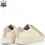 Класически модел дамски кецове в нежно съчетание на бежова естествена кожа и бежов естествен велур. С избора на този модел няма как да се сгреши, винаги модерни, лесно се съчетават с всякакъв тип облекло и изключително леки и удобни. Вътрешната част на модела също е изцяло от естествена кожа, а стелката е Footbed, която е изключително мека и се оформя по стъпалото на принципа на мемори пяна. В допълнение моделът е с олекотено полиуретаново ходило, шито и лепено, което перфектно допълва комфорта на модела и следва естествената линия на движение на краката. С тях ще бъдете просто неотразима.