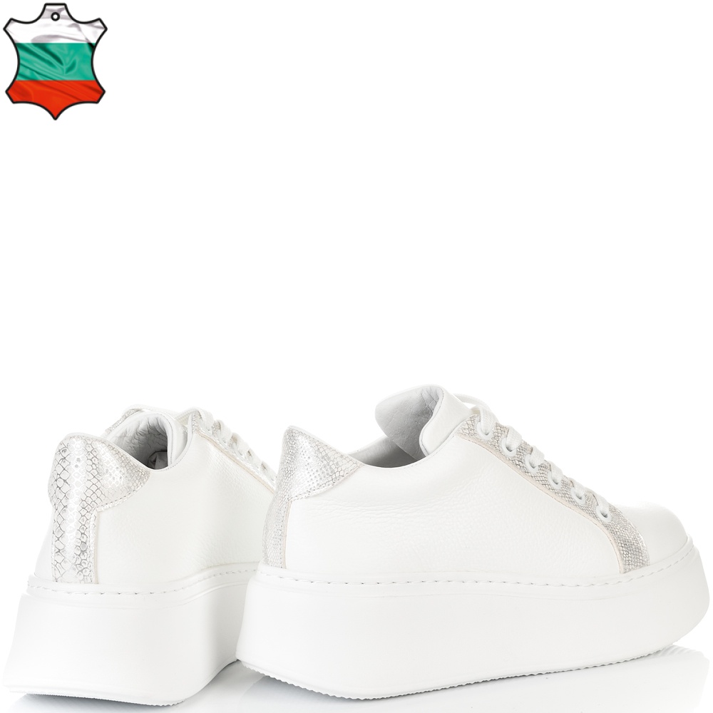 ДАМСКИ КЕЦОВЕ ОТ ЕСТЕСТВЕНА КОЖА-7073-БЯЛО/СРЕБЪРНО