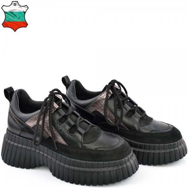 ДАМСКИ КЕЦОВЕ ОТ ЕСТЕСТВЕНА КОЖА-ASTRA-6040-ЧЕРНО/БРОНЗОВИ
