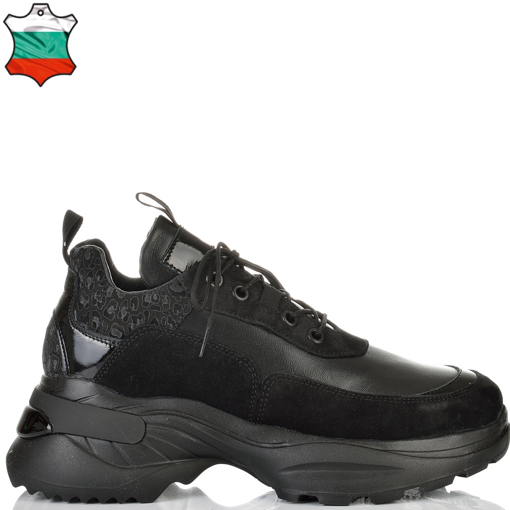В нежно съчетание на черна напа с ефектна кожа с животински