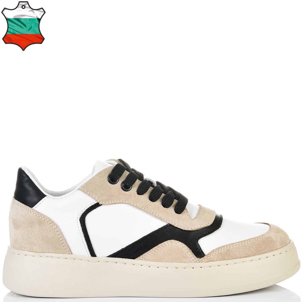ДАМСКИ КЕЦОВЕ ОТ ЕСТЕСТВЕНА КОЖА-D5065-БЯЛО/БЕЖОВО/ЧЕРНО