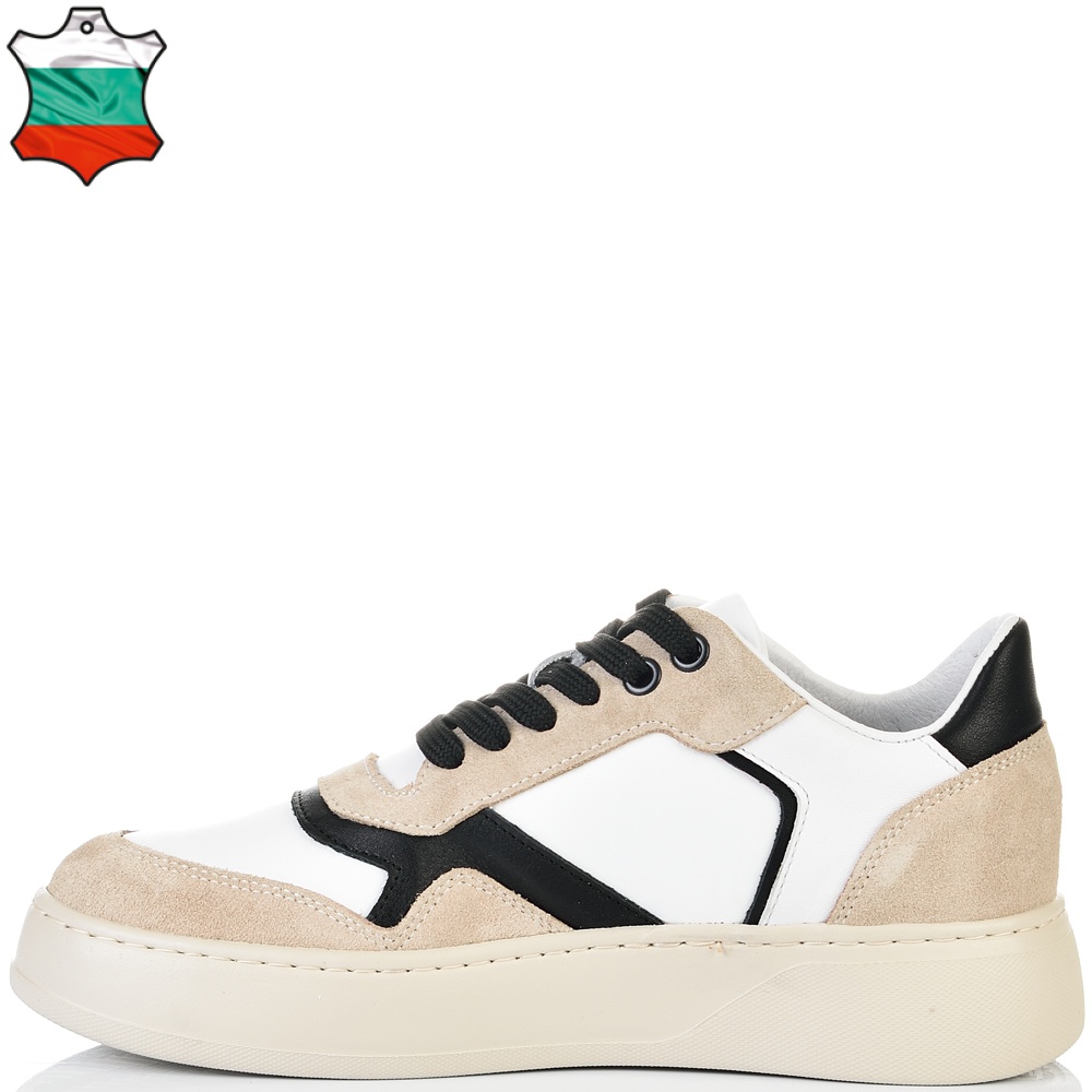ДАМСКИ КЕЦОВЕ ОТ ЕСТЕСТВЕНА КОЖА-D5065-БЯЛО/БЕЖОВО/ЧЕРНО