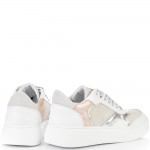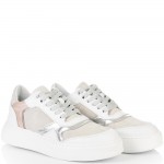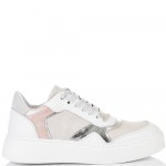Стлни и нежни кецове в съчетание на бяла естествена кожа, бял велур и ефектни свежи цветове на хамелеонова пудра и сребристо. Моделът ще допринесе много свежест и стил във вашата визия. Вътрешната част на модела също е изцяло от естествена кожа, а стелката е Footbed, която е изключително мека и се оформя по стъпалото на принципа на мемори пяна. В допълнение моделът е с олекотено полиуретаново ходило, шито и лепено, което перфектно допълва комфорта на модела и следва естествената линия на движение на краката.