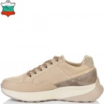 Стлни и нежни кецове в съчетание на различни варианти естествена кожа и велур в бежовата цветова гама на бежово ходило. Моделът ще допринесе завършеност и стил във вашата визия. Вътрешната част на модела също е изцяло от естествена кожа, а стелката е Footbed, която е изключително мека и се оформя по стъпалото на принципа на мемори пяна. В допълнение моделът е с олекотено полиуретаново ходило, шито и лепено, което перфектно допълва комфорта на модела и следва естествената линия на движение на краката.