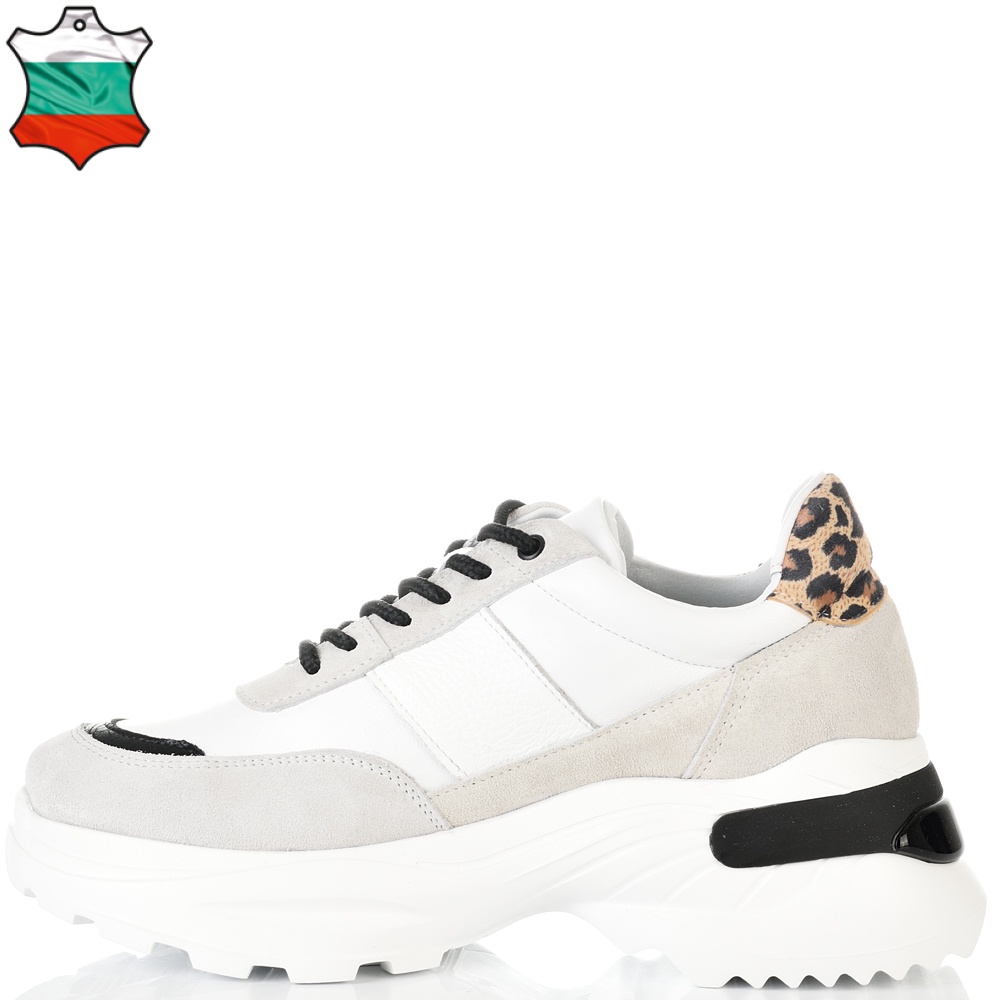 Топ модел за сезона в нежно и стилно съчетание на бяла напа с ефектна кожа с животински принт, черен лак и сив велур тези кецове са перфектното допълнение за Вашата ежедневната визия, те ще внесат свежест, стил и настроение в деня Ви. Тези дамски кецове ще Ви осигурят нужния комфорт, а чувството, което ще изпитате, когато ги обуете е все едно стъпвате върху облече. Защо? Защото кецовете са със специална Footbed стелка, която е изключително мека и се оформя по стъпалото на принципа на мемори пяна. И накрая, но не на последно място кецовете са с олекотено полиуретаново ходило, което следва естествената линия на движения на краката.
