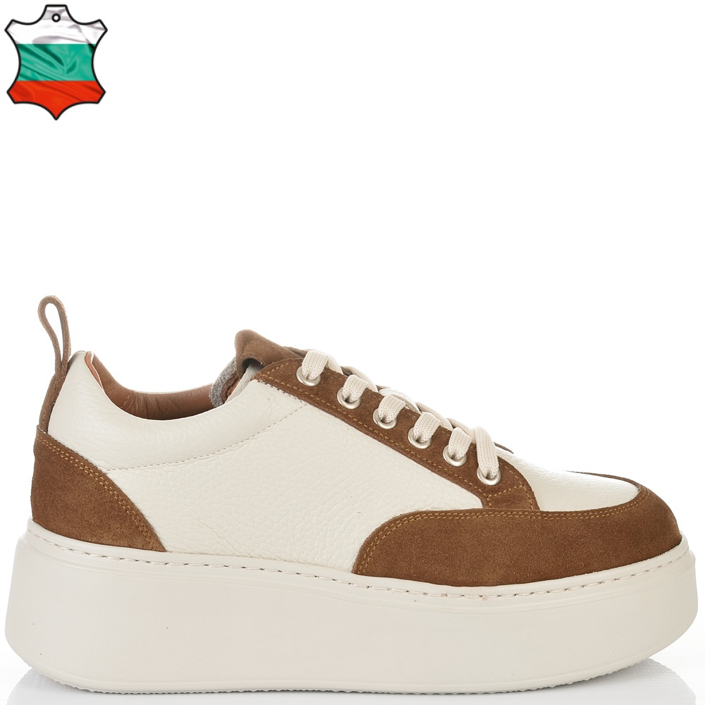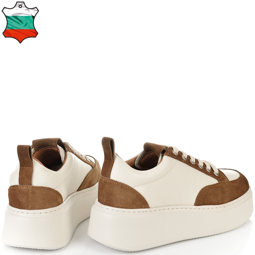Перфектният избор за сезона! Защо ли? Защото този модел дамски кецове е изработен изцяло от естествена кожа в нежно съчетание на бежова кожа с таба велур с тези кецове ще имате свободата да ги съчетавате с всякакви тоалети. Вътрешната част на модела също е изцяло от естествена кожа, а стелката е Footbed, която е изключително мека и се оформя по стъпалото на принципа на мемори пяна. В допълнение моделът е с олекотено полиуретаново ходило, шито и лепено, което перфектно допълва комфорта на модела и следва естествената линия на движение на краката. С тях ще бъдете просто неотразима.